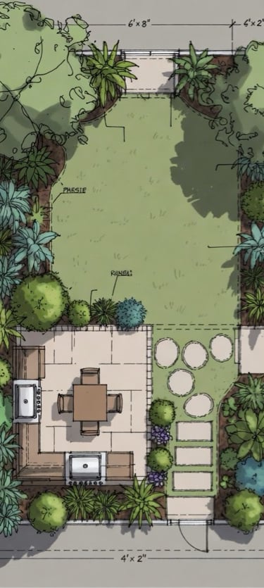 The design is completely flexible—adjustments to size, shape, features, plants, colors, or style can be made quickly to match your exact preferences and the unique characteristics of your site (slope, drainage, sun exposure, views, existing trees, etc.). This opens up virtually unlimited creative possibilities.