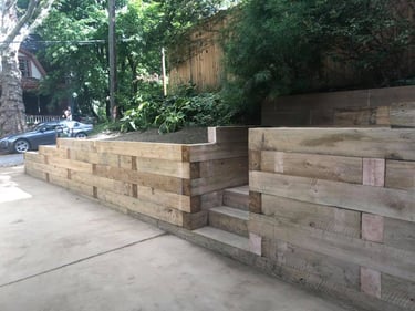 We also offer classic creosote-treated railroad tie walls, known for extreme durability and heavy-duty strength against rot and insects. However, creosote—a toxic preservative—can leach into soil, raising environmental and health concerns, making them less ideal near gardens, children, pets, or water sources. Modern preferences have shifted toward safer alternatives.