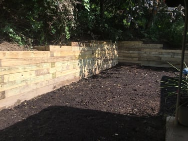 Our pressure-treated timber walls deliver similar strength and longevity (typically 20–30+ years with proper drainage) while avoiding these risks and blending naturally into landscapes.